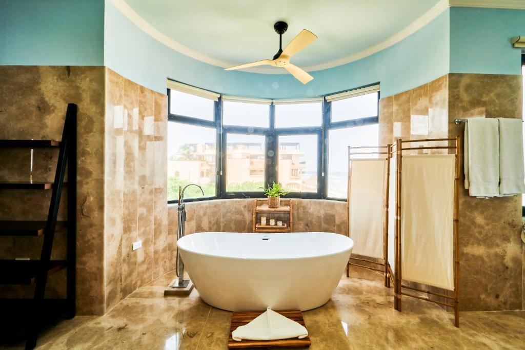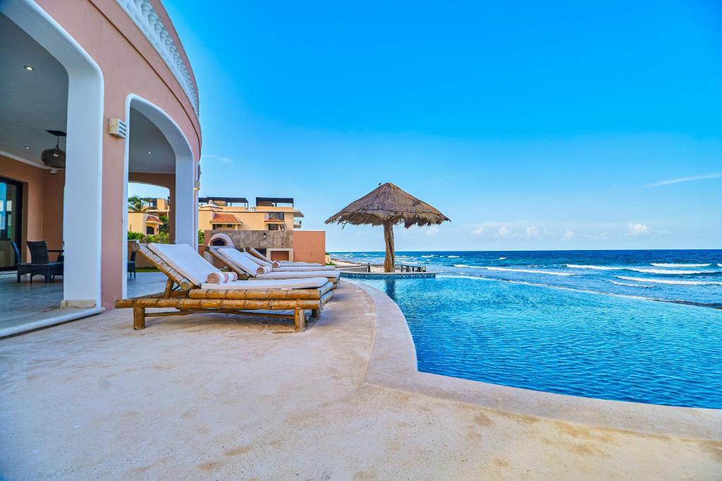 14 Tage Unterkunft in einem Haus zwischen Xel Ha und Tulum direkt am Meer in sechs Doppelzimmern mit großen King Size Betten mit jeweils eigenem Bad. Frühstück ist inbegriffen.